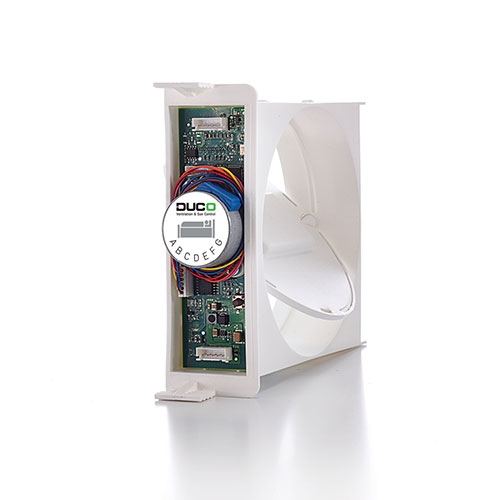 Les clapets de réglage, équipés ou non en option d'un capteur pour la mesure du CO2 ou de l'humidité, peuvent être intégrés dans le ventilateur d'extraction DucoBox Focus. Ces clapets veillent à ce que seul l'air vicié et/ou humide soit évacué, quand et où cela s'avère nécessaire et en quantité adéquate.