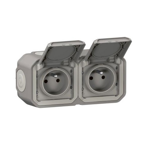 Plexo Prise 2x2P+T horizontal complet IP55 IK08 gris