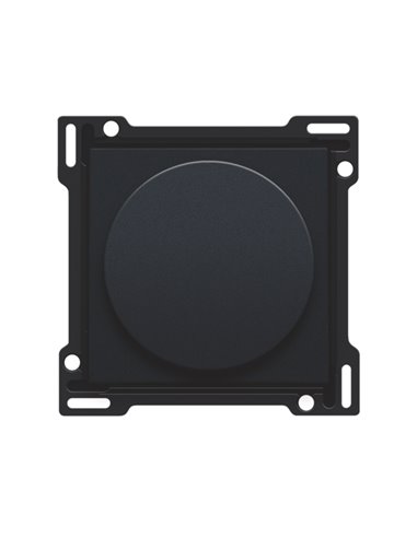Set de finition pour variateur à bouton rotatif ou régulateur de vitesse, incl. bouton rotatif, couleur black coated. L'enjoliveur est entouré d’un bord plat muni aux 4 angles d’une ouverture rectangulaire dans laquelle se trouve un crochet de sécurité multiposition. La partie saillante de l’enjoliveur fait en sorte qu’en cas de plâtrage peu soigneux, la plaque de recouvrement puisse toujours être fixée bien à plat contre le mur grâce aux crochets de sécurité. Ce système fonctionne dans deux sens : si le boîtier d’encastrement dépasse du plâtrage, les crochets de sécurité multiposition compensent un jeu de 1 à 1,2 mm ; si le boîtier d’encastrement est enfoncé trop profondément dans le plâtrage, les crochets de sécurité peuvent compenser un jeu de 1,8 mm max. Le bord plat qui entoure l’enjoliveur comprend également 4 ouvertures rondes qui assurent le positionnement correct de la plaque de recouvrement par rapport à l’enjoliveur. Après le montage de l’ensemble (plaque de recouvrement, set de finition et mécanisme), aucune partie métallique n’est visible grâce au bord plat sur l’enjoliveur.