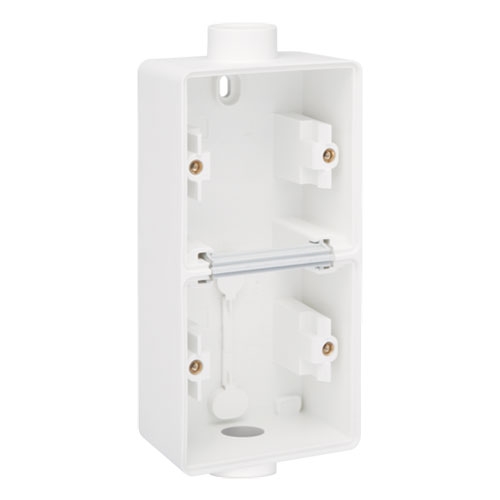 Cette boîte en saillie double verticale avec deux entrées M20 simples convient à deux fonctions. L'ensemble est étanche aux projections d'eau, ce qui le rend extrêmement bien adapté à une utilisation dans les zones humides et les environnements exigeants. Couleur de finition: white