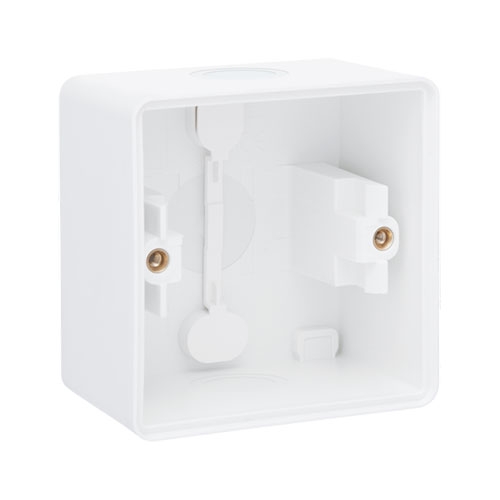Cette boîte en saillie verticale avec deux entrées souples simples convient à une fonction. L'ensemble est étanche aux projections d'eau, ce qui le rend extrêmement bien adapté à une utilisation dans les zones humides et les environnements exigeants. Couleur de finition: white