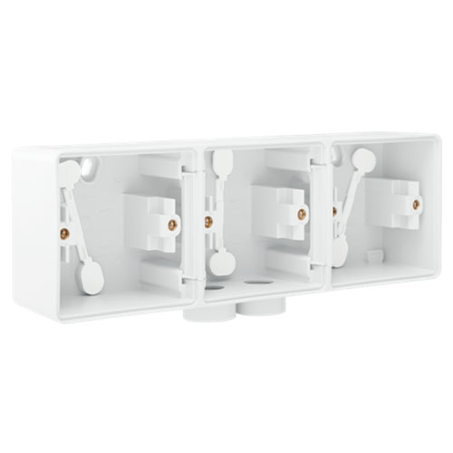 Triple boîte en saillie horizontal étanche aux projections d'eau avec une entrée M20 double pour trois fonctions, white.
