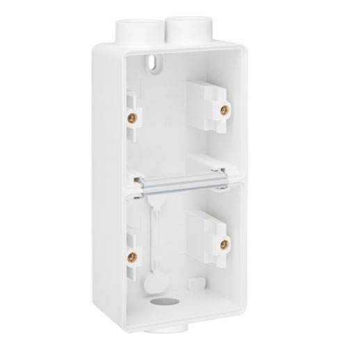 Cette boîte en saillie double verticale avec une entrée M20 double et une entrée M20 simple convient à deux fonctions. L'ensemble est étanche aux projections d'eau, ce qui le rend extrêmement bien adapté à une utilisation dans les zones humides et les environnements exigeants. Couleur de finition: white