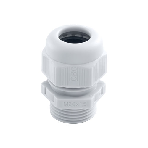 Presse-étoupe robuste en matière plastique M20 x 1,5, en polyamide gris clair, et chapeau, pour le passage hermétique et étanche à la poussière de câbles dans des boîtiers de montage étanches (IP55). Le diamètre externe du câble est de 6 mm min. et de 13 mm max. Marquage CE.
