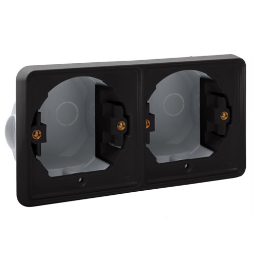 Boîte d'encastrement double horizontale étanche aux projections d'eau pour deux functions, black.