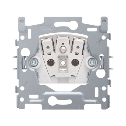 Mécanisme pour une prise de courant avec broche de terre, avec fixation par griffes et avec obturateurs de protection. La profondeur d’encastrement de cette prise de courant est de 21 mm. Un set de finition et une plaque de recouvrement d’une couleur au choix doivent être commandés séparément.