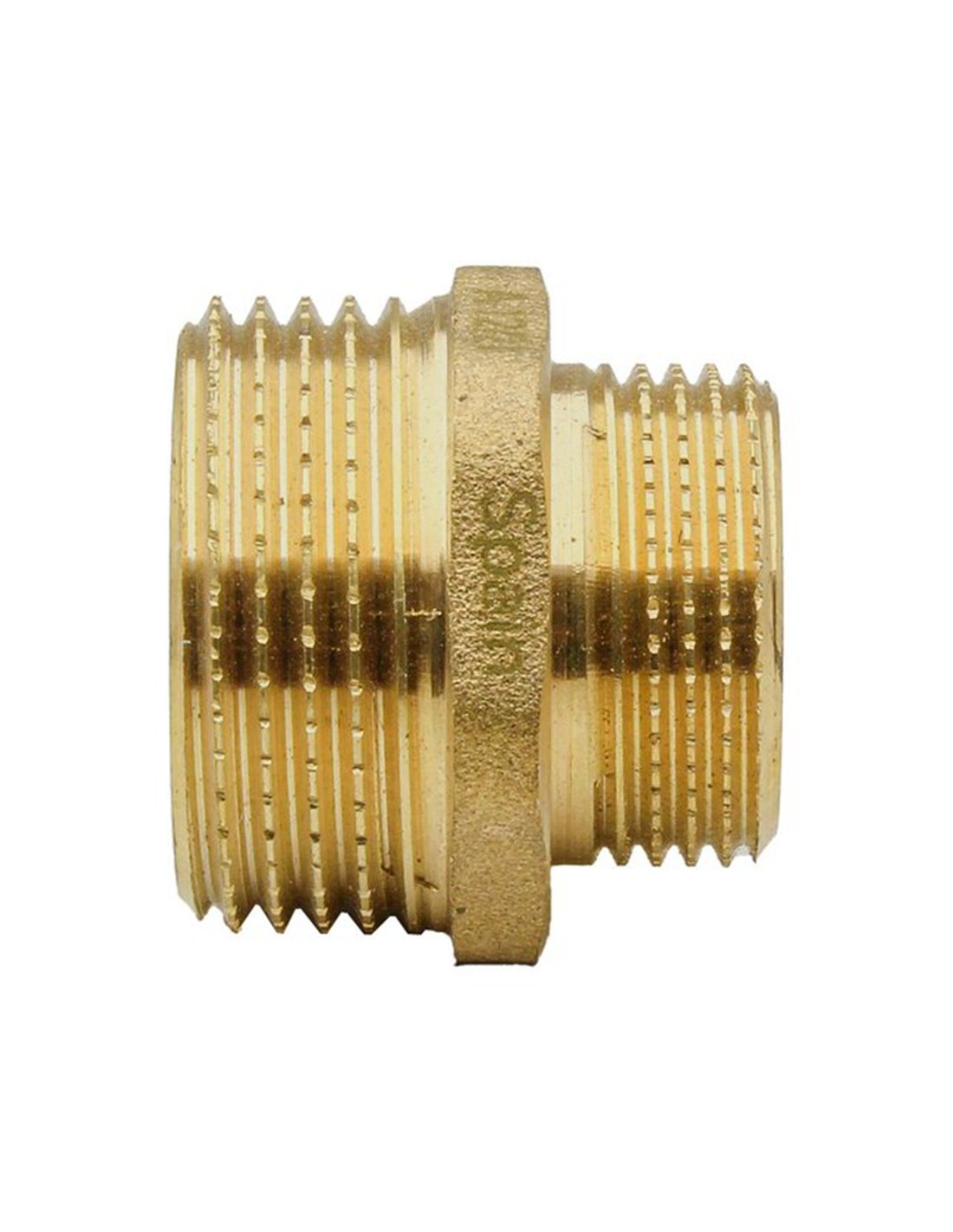 Série 87 mamelon de réduction avec tête hexagonale et raccord fileté mâle-mâle. Corps renforcé en laiton jaune et filetages conformes à la norme ISO 228/1. Le mamelon 87245 est conçu pour raccorder des vannes ou d'autres raccords.