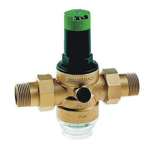 Braukmann. D06F A. Réducteur de pression avec bouton de réglage et affichage précis du point de consigne. Pression amont jusqu'à max. 25 bar, température max 70°C (avec pot de décantation en laiton). Pression 1,5 - 12 bar. Système modulaire réducteur/filtre. Le réducteur peut être facilement combiné plus tard avec un filtre adaptable à contre-courant. Le pot de décantation transparent rend l'encrassement du tamis visible. Accès aisé du tamis fin en dessous du réducteur. Largeur des mailles de 0,16 mm pour une bonne protection des garnitures intérieures. Garniture de soupape en matière plastique résistante à la corrosion et anti-dépôt calcaire.