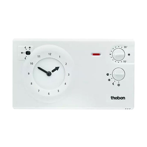 - Sélecteur de mode de fonctionnement : température réduite permanente, température normale permanente, mode automatique, mode hors gel et mode protection des plantes +6 °C