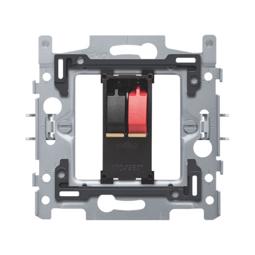 Mechanisme voor aansluiting van één luidspreker, met klauwbevestiging. Een afwerkingsset in een kleur naar keuze moet afzonderlijk besteld worden.