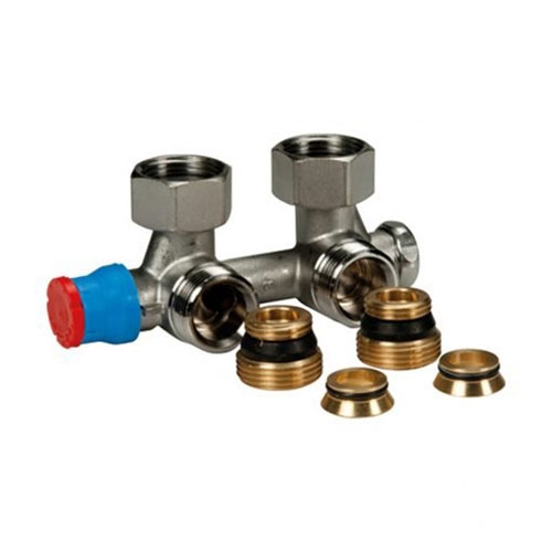 Geleverd met 2 verloopstukken R483B 3/4"x1/2" voor aansluiting van radiatoren via 1/2" uitwendige schroefdraad