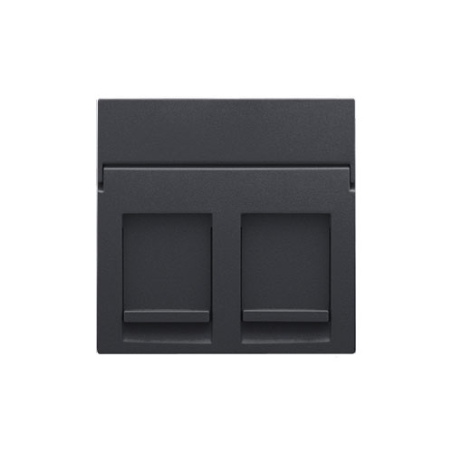 Centraalplaatje voor 2 RJ outlets in een vlakke uitvoering. De centraalplaat bevat een transparant tekstveld waarin je eenvoudig iconen of teksten kan aanbrengen. Afwerkingskleur: anthracite.
