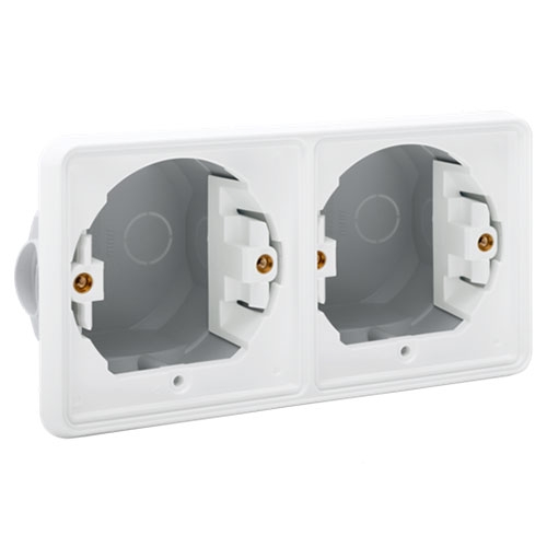 Spuitwaterdichte tweevoudige horizontale inbouwdoos voor twee functies, white.