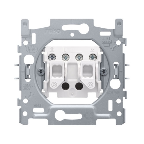Sokkel voor rolluikdrukknop voor elektronische sturingen, 10 A/250 Vac, schroefklemmen.
