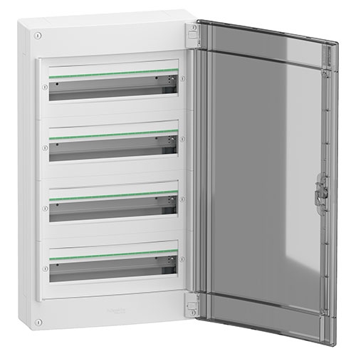 breedte Totaal: 426 mm hoogte Totaal: 750 mm diepte Totaal: 145 mm inwendige diepte 135 mm aantal modules (18 mm) per rij 18,0 aantal horizontale rijen 4,0 totaal aantal modules (18 mm) 72,0 stap van 9 mm 144,0 elektrische isolatieklasse Klasse II type frontplaat Modulair deurtype Transparant railtype Symmetrisch DIN beschrijving montageplaat Zonder montageplaat vermogensdissipatie in W 64 W [In] nominale stroom 125 A [Ui] nominale isolatiespanning 400 V ingang kabel Kabel of buis