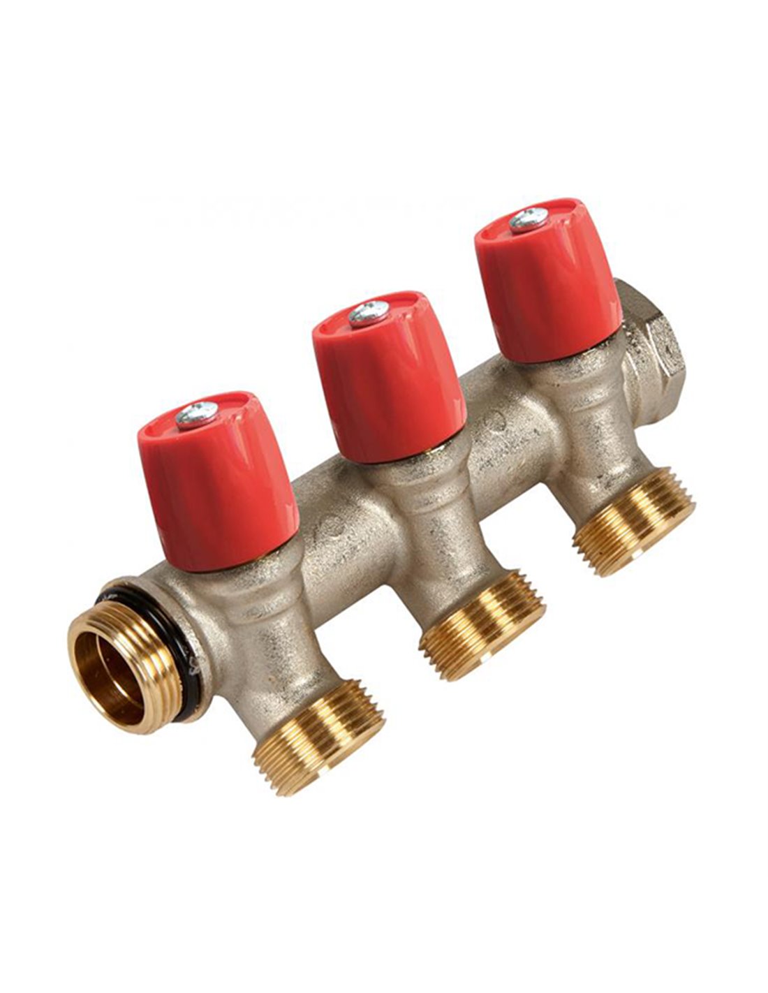 Verdeler 3/4" met rode kraan + EK + O-ring aansluiting/uitlijning